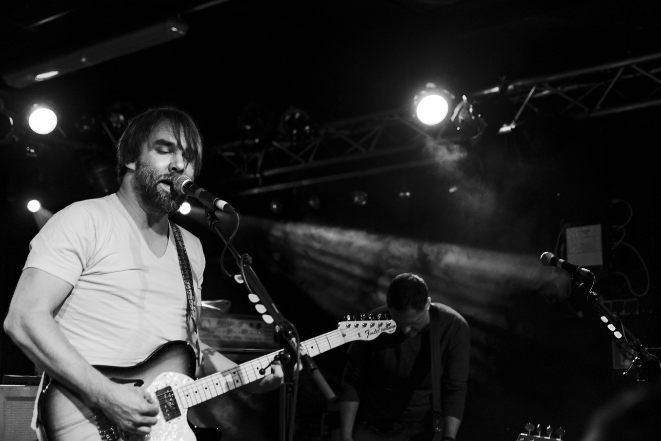 Das sehnsüchtige Warten war am Verhalten der Anwesenden deutlich erkennbar: wo sonst in den Pausen zwischen Songs munter drauf los geplappert oder in den Songs dazwischen gerufen wird, herrschte am Mittwoch in der Hansa 39 fast schon eine beängstigende Stille. Kaum jemand traute sich, mehr als das Nötige zu zu flüstern und konzentrierte sich lieber voll und ganz auf die Musik. Wenn die Lüftungsanlage in einer Konzerthalle als störend empfunden wird, ist es wirklich leise. Gut so. Schön, das München es doch ab und an schafft, den Menschen auf der Bühne den nötigen Respekt entgegen zu bringen.