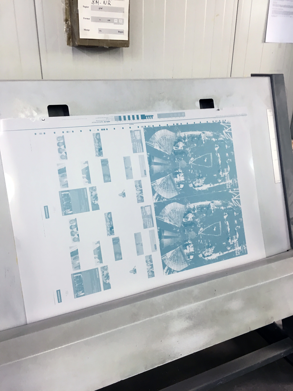 Bei der Belichtung werden meine Inhalte erst mal auf Aluminiumplatten aufgeteilt. Insgesamt vier davon gibt es, für jede Grundfarbe eine. Pro Ton werden auf die Platte bestimmte Flächen eingeätzt, die beim Drucken im Anschluss dann nur ihre zugeteilte Farbe tragen. Sind alle vier Platten durch die blaue, nach faulen Eiern riechende Flüssigkeit, durch, darf ich mich erstmal die Nacht über ausruhen, bevor es am nächsten Tag weiter zu den Druck-Maschinen geht.