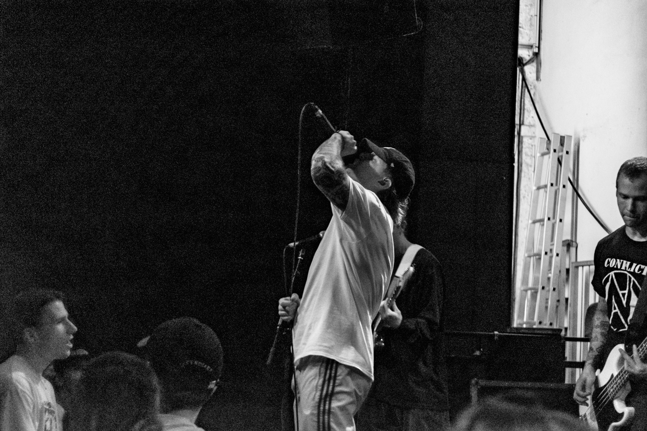 Im zweiten Teil des Sets haben sich die Herren aus Baltimore dann auf ihre älteren Songs konzentriert. Da ist die Stimmung dann auch von Pop-Konzert-Manier mit bravem Zuhören zur Eskalation gekippt. Zwischenzeitlich hat Justice sein Mikrofon einfach den Leuten im Pit überlassen. Diese haben sich ganz Hardcore-typisch jeweils über der armen Seele gestapelt, die grade das Mikrofon in der Hand hatte. Zusätzlich zu den Leuten, die von links und rechts in den Pulk drückten, sprangen von der Bühne Stage-Diver in die Menge. Die Leute hatten sichtlich Spaß dabei. Ab und an kommt also auch München aus seinem Trott und bewegt sich auf Konzerten. So schnell wie der Abend angefangen hatte, war er auch wieder vorbei. Angel Du$t verabschiedete sich mit einem „we don’t have more“ und das war:s.