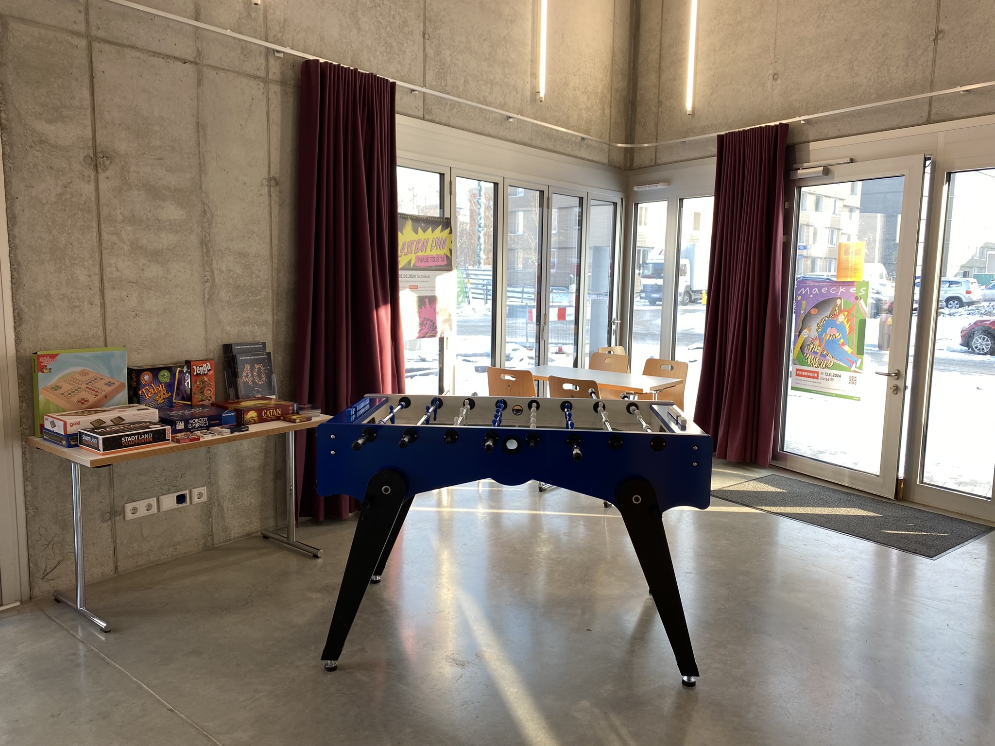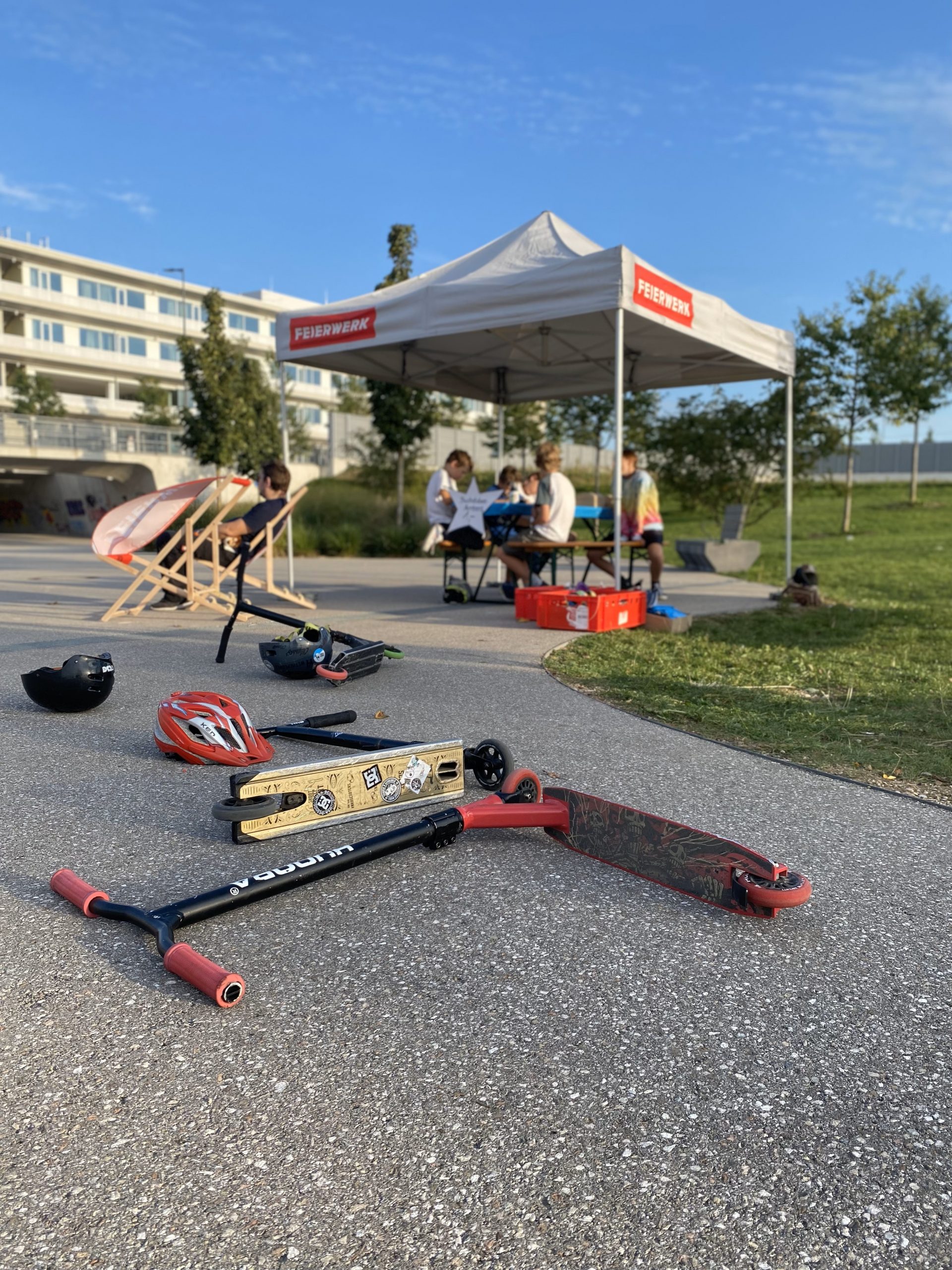 Ein weiterer Spot, an dem wir auch zukünftig verstärkt präsent sein möchten, ist der Skatepark in Freiham, der sich in unmittelbarer Nähe zum Bildungscampus befindet. Versuchsweise stand ich jetzt dort im Herbst schon einige Male gemeinsam mit unserem Übungsleiter Stefan, und die Kids und Jugendlichen konnten in den Skatepausen mitgebrachte Diabolos, die Slackline oder auch Speedminton ausprobieren, bevor sie wieder auf den Scooter oder das Skateboard gestiegen sind. Auch an unserer kleinen mobilen Tischtennis-Platte fanden diverse Matches statt.