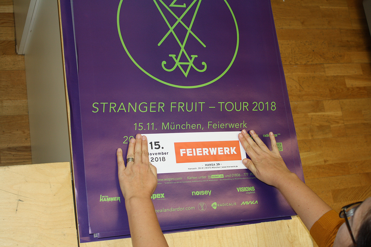 BFD in der ÖA heißt im Feierwerk: Du sitzt bei David in der Zentrale. David ist ein Urgestein im Feierwerk und das Mädchen für alles. Mein Job in der Feierwerk Zentrale ist, ihm bei dem ganzen Zeug zu helfen. Dazu gehört Telefondienst (alle rufen immer zuerst bei dir an, egal von wem sie was brauchen), Postversand von unseren Programmheftchen, an der Webseite mitschrauben und das Gelände zu plakatieren. Hier hat man auch mit Bands, die bei uns spielen, zu tun…und mit ihrer Wäsche. Hey, schau nicht so: Kannst du von dir sagen, dass du schon die Bettwäsche von Cro und Obituary gewaschen hast? Na? Siehste! Ich schon. Aber hin und wieder komme ich auch direkt mit ihnen in Kontakt: Anrufe, dass sich Bands verfahren haben und den Weg nicht mehr wissen oder dass sie ihr geliebtes Hemd im Backstage haben liegen lassen – das passiert hier beim Bundesfreiwilligendienst öfter als man denkt.