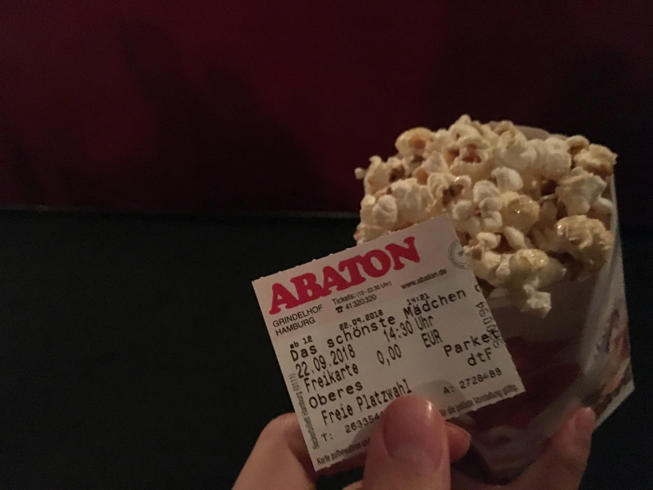 Beim Reeperbahn Festival kann man nämlich nicht nur Bands anschauen und Vorträgen lauschen, es gibt zusätzlich noch eine Kunstausstellung, eine Börse für handgedruckte Bandposter (Flatstock) und das „Abaton Kino„, das verschiedene Filme zeigt. Wir holen uns eine Packung leckeres Popcorn und sehen uns den deutschen Film „Das schönste Mädchen der Welt“ an. Ein Teenie-Film, der sich über Teenie-Filme lustig macht, das Ganze gepaart mit Rap Battle Szenen mit witzigen und klugen Texten. Wenn man sich die Beschreibung des Films durchliest könnte man denken, dass es sich hier um eine weitere nichtssagende romantische Musikkomödie handelt. Der Film ist aber tatsächlich viel besser, als man zuerst denkt, und wir verlassen das Kino überglücklich mit der Entscheidung, uns unseren letzten Tag in Hamburg mit diesem Film versüßt zu haben.