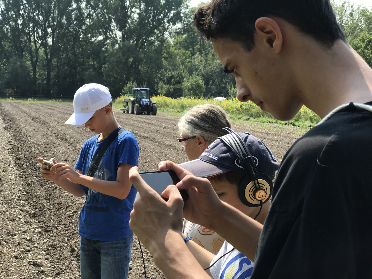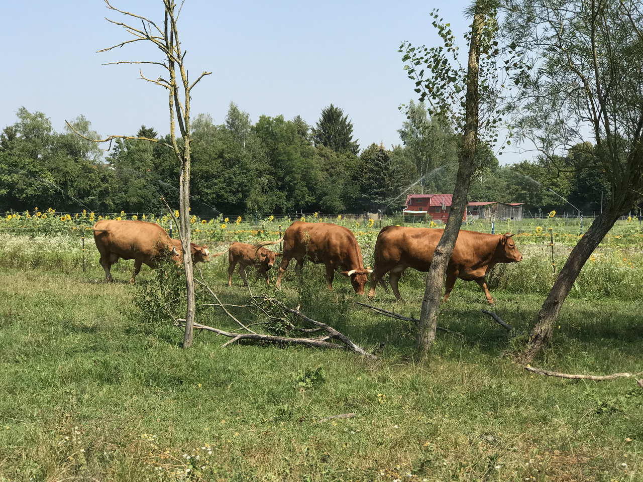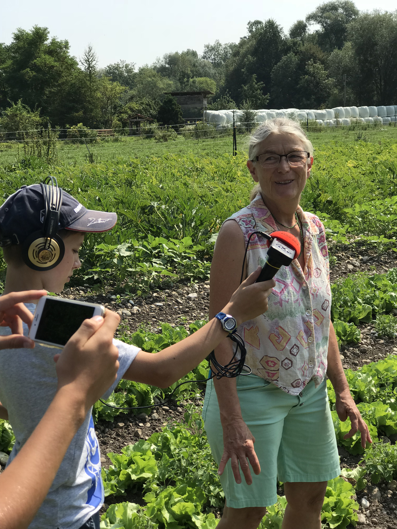 Gleich zu Beginn lernen wir somit schon mal sehr anschaulich wesentliche Unterschiede zum konventionellen Anbau kennen. Neben Nutzpflanzen dürfen beim biologischen Anbau auch andere Pflanzen wachsen und gedeihen. Blumen und Blühstreifen geben Bestäubern, wie z.B. Bienen, einen Lebensraum. Beikräuter erzeugen einen guten Humus und sind erwünscht. Ebenso Humus aufbauend sind die eigenen Rinder, deren Weide mit den Anbauflächen von Zeit zu Zeit gewechselt wird. Spritzmittel gibt es nicht und Düngemittel werden ausschließlich auf dem Hof erzeugt. Alles Natur und ein Kreislauf!