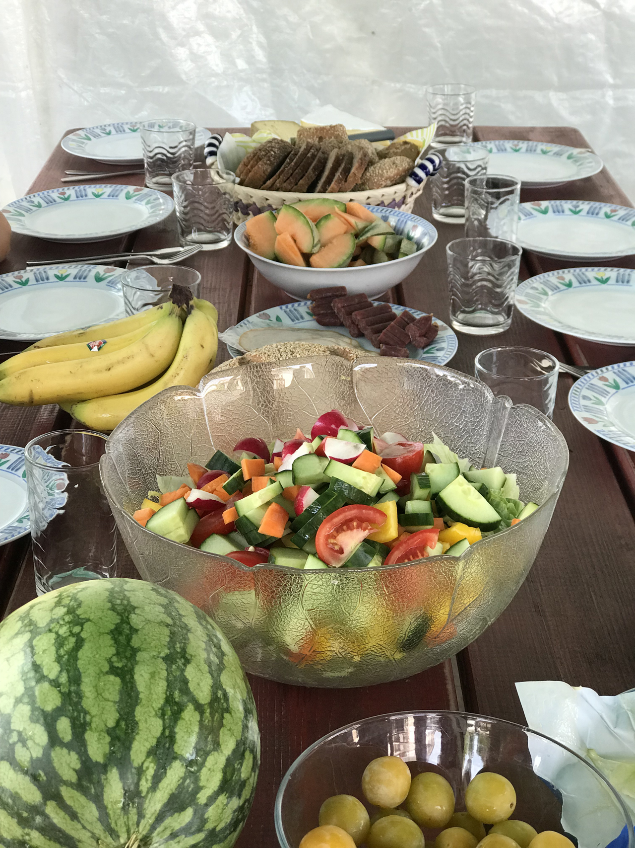 Am Ende landet der leckere, frische und knackige Bio-Salat dann entweder in der Öko-Kiste des Amperhofs oder in den hungrigen Bäuchen der Besucher. Letzteres ist auch uns widerfahren und na ja, um ehrlich zu sein, ich werde ihm das nächste Mal ganz bestimmt „Hallo“ sagen – dem Salat. Eine Geschmacksexplosion geht auch ohne Glutamat. Ehrenwort! Einfach mal auf eine Amperhof Tomate beißen. Mhhhh lecker! Was die Tomate jetzt mit dem Salat und dem Anbau zu tun hat? Nix, aber die war da drin. Das nennt man dann „Gemischter Salat“ 😉