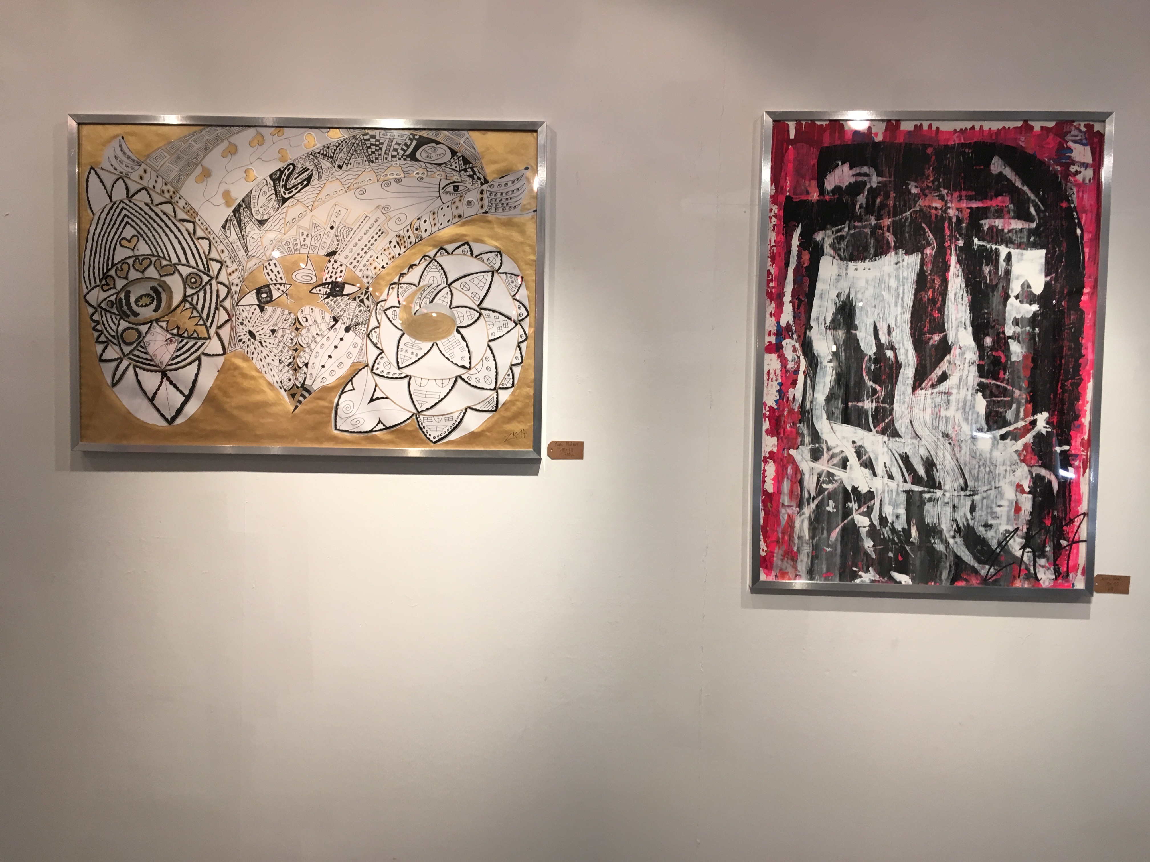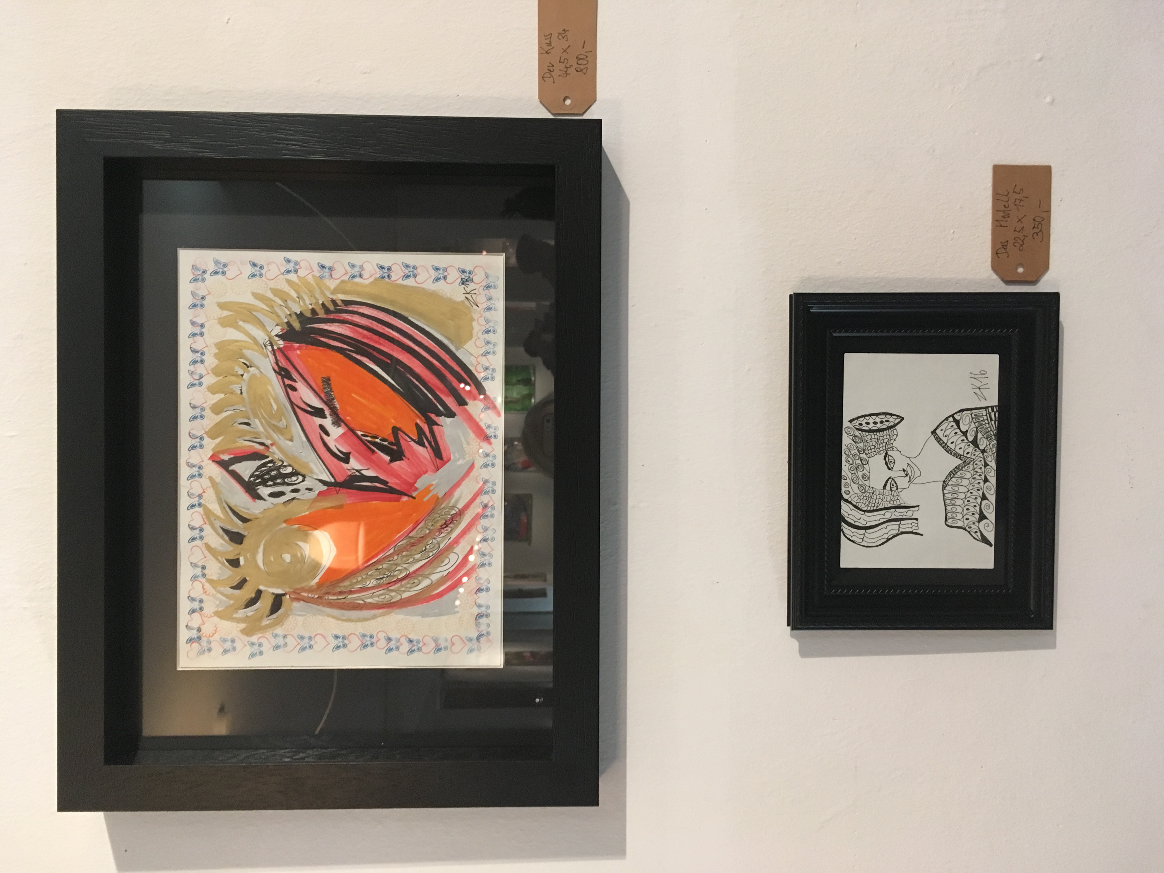 Seine Zeichnungen sind sehr abstrakt, deren Farben wirken sehr energievoll auf mich. Inspirationen und Motive findet Zdenek Kotala in der Natur und in der Architektur von Gebäuden. Studiofotos produziert er nicht. Neben den auffallenden Heads-Bildern entdecke ich noch einige Kollagen auf einem Tisch. Sie bestehen jeweils aus drei Bildern. Das oberste Bild soll den Kopf darstellen. Der Rest sind fotografische Ausschnitte eines weiblichen Körpers. Die Bildschnitte verfremden den Gesamteindruck, wodurch die anzüglichen Kollagen ebenso mystisch wie surreal wirken.