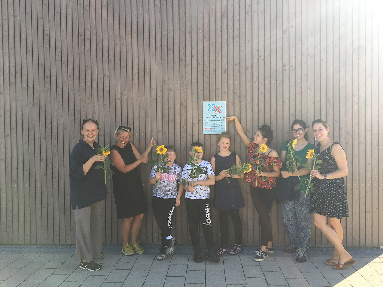 16:30 Uhr: Applaus, Applaus! Alle sind stolz auf den Film der Nachwuchsprofis. Zum Abschluss bekommen die Mitwirkenden Blumen für ihren Einsatz, ihre Mühe und ihr Durchhaltevermögen. Na dann – auf geht’s zu Kuchen und Eistee. Viel Spaß bei der Premierenparty 😉