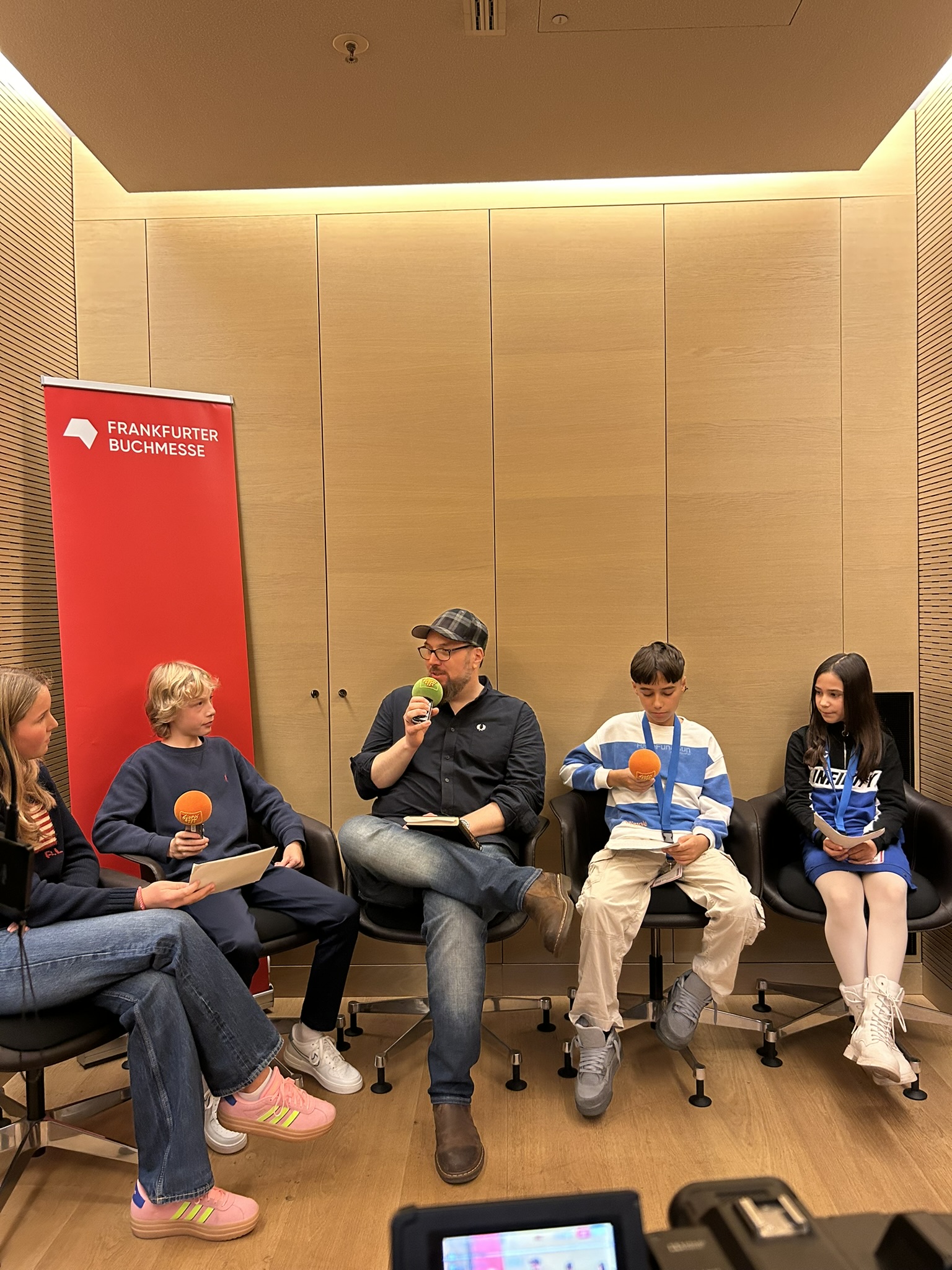 Ein echtes Highlight waren die Interviews, die wir für die Sendungen führten. Unter unseren Interviewpartner*innen waren Autor*innen, Schauspieler*innen und Politiker*innen – also eine bunte Mischung aus spannenden Persönlichkeiten. Manche Interviews fanden online statt, andere live auf Events wie der Frankfurter Buchmesse oder bei verschiedenen Filmpremieren. Ich war bei mehreren Interview-Einsätzen dabei, habe die Reporterkinder während der Interviews unterstützt und für unseren YouTube-Kanal der Südpolshow gefilmt. Dabei konnte ich viele tolle Stars treffen und den ganzen Trubel hautnah miterleben.