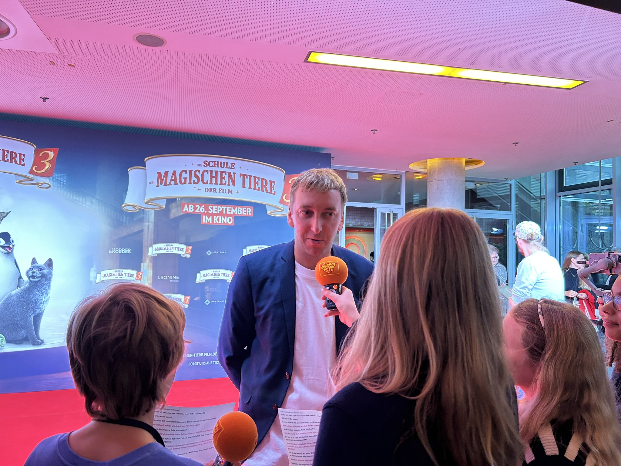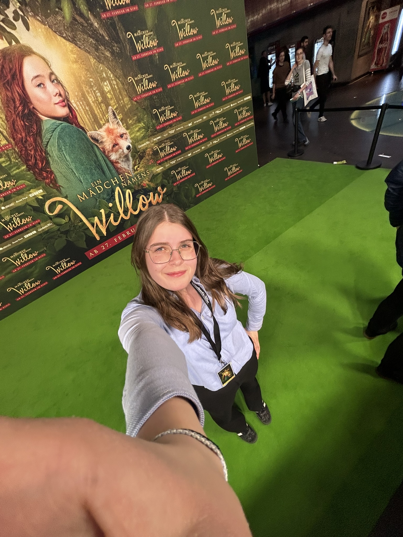 Zum Beispiel den Komiker Max Giermann, der bei „Ein Mädchen namens Willow“ das Hexenbuch spielt. Bei meinem ersten Einsatz auf der Premiere von „Die Schule der magischen Tiere 3“ habe ich zum Beispiel die Autorin der Buchreihe, Margit Auer und den YouTuber Freshtorge, von dem ich früher immer die Videos über seine ausgedachte Figur „Sandra“ geschaut habe getroffen.