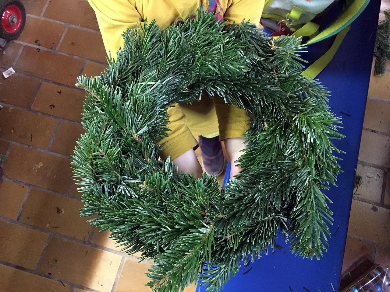 - Kugeln, Bänder, Nüsse, Orangenscheiben,… und was immer einem gefällt zur Dekoration