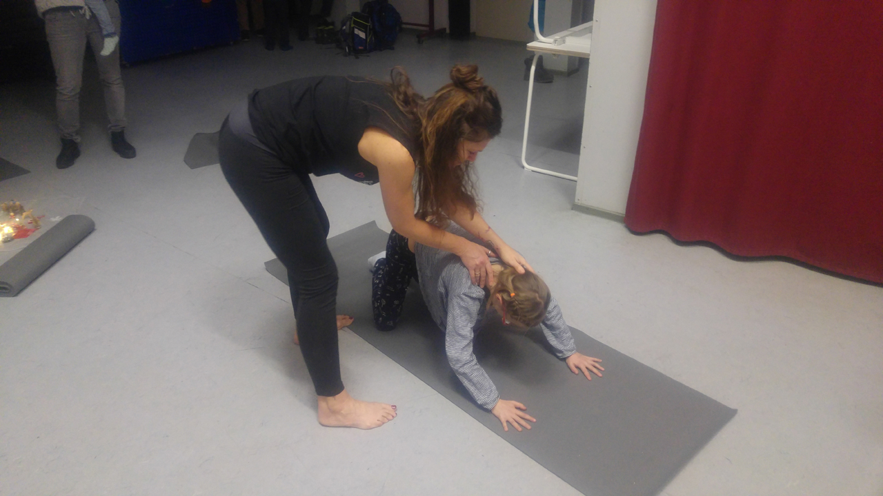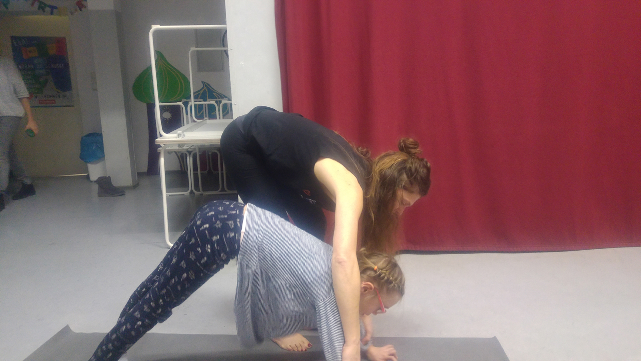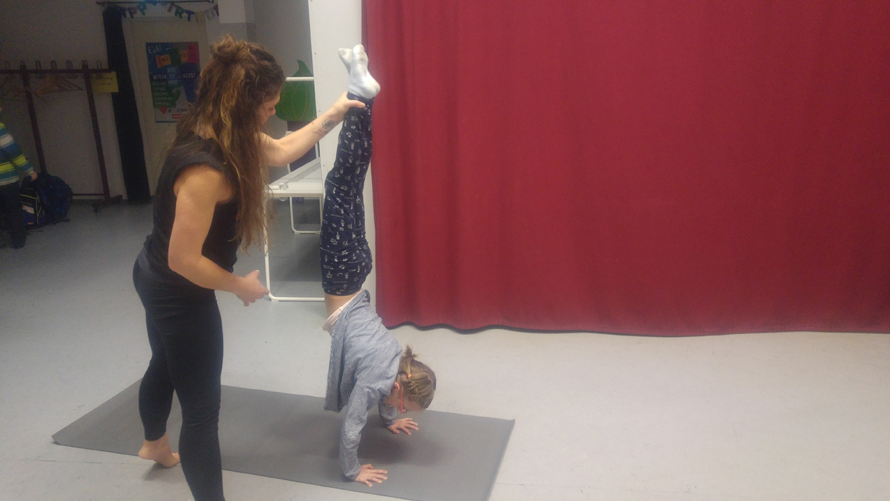 Bei den einzelnen Übungen, wie beispielsweise dem „Hund“, dem „Kind“ oder auch einfach einem Handstand, steht Deanna den Kindern natürlich immer zur Seite und gibt Hilfestellungen, wenn es nötig ist. Auf meine Frage, ob man besonders gelenkig sein müsse, um beim Yoga mitzumachen (bisher meine Lieblingsausrede, um es selbst nicht auszuprobieren), hat Deanna eine klare Antwort: „Nein, jeder macht es, so gut er kann. Vollkommen unbewertet!“ Die Gelenkigkeit ergebe sich dann spätestens mit der Zeit.