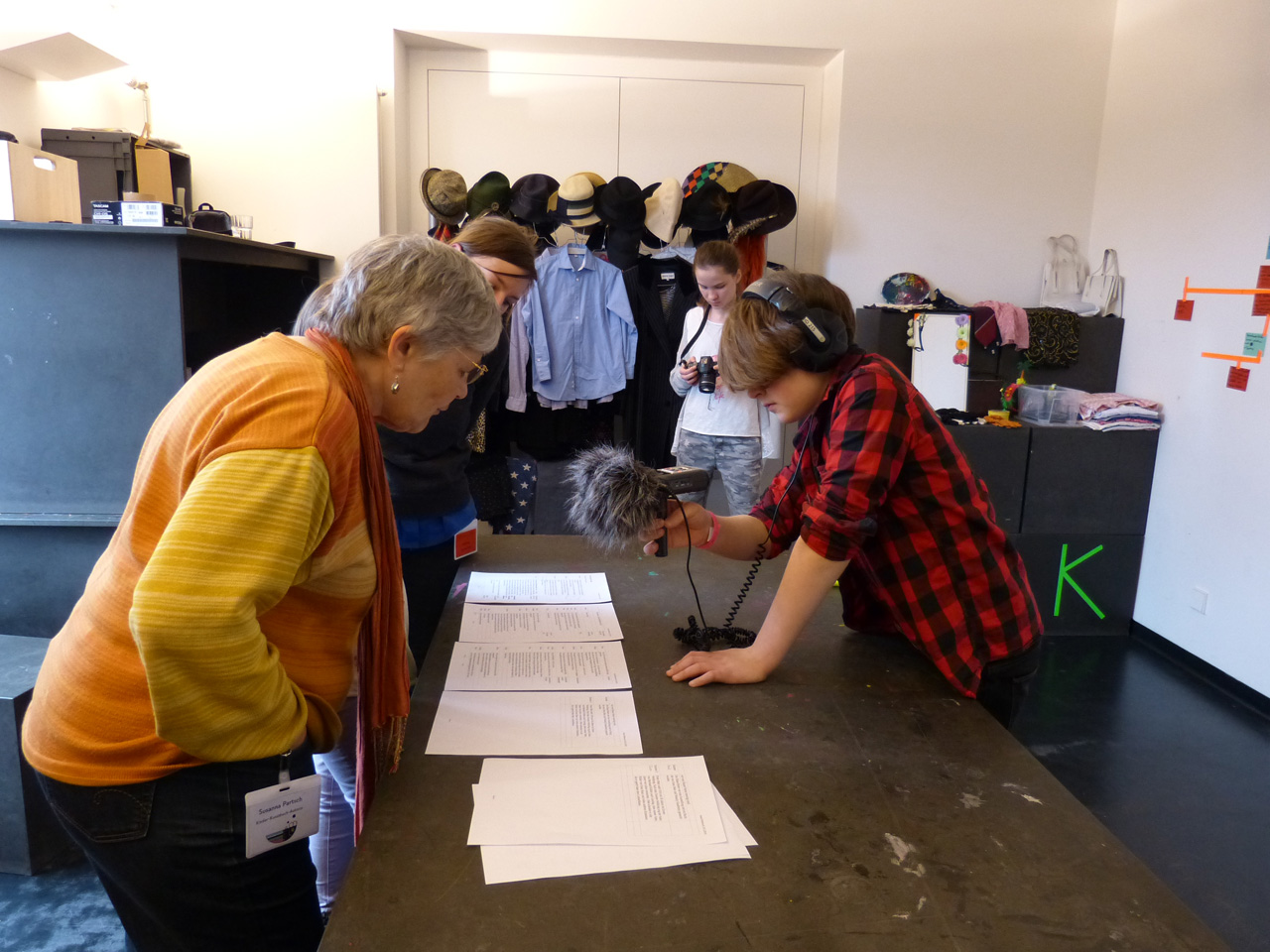 Nachdem die Kinder vier Kunstwerke aus der aktuellen Ausstellung im Lenbachhaus ausgesucht haben, beginnt die eigentliche Arbeit. Das Ziel: Hörspiele, die die Geschichte der Künstler und der Personen rund um das Werk erlebbar machen. Am Anfang steht also immer die Frage: Wie könnte das Gemälde oder die Installation klingen? Welche Geschichte soll erzählt werden? Mit diesen Fragen werden die Kinder natürlich nicht alleine gelassen. Die Kunstpädagogen Mirja Reuter und Florian Gass geben den Rahmen vor. Sie erarbeiten gemeinsam mit den Kindern den Erzählgedanken.