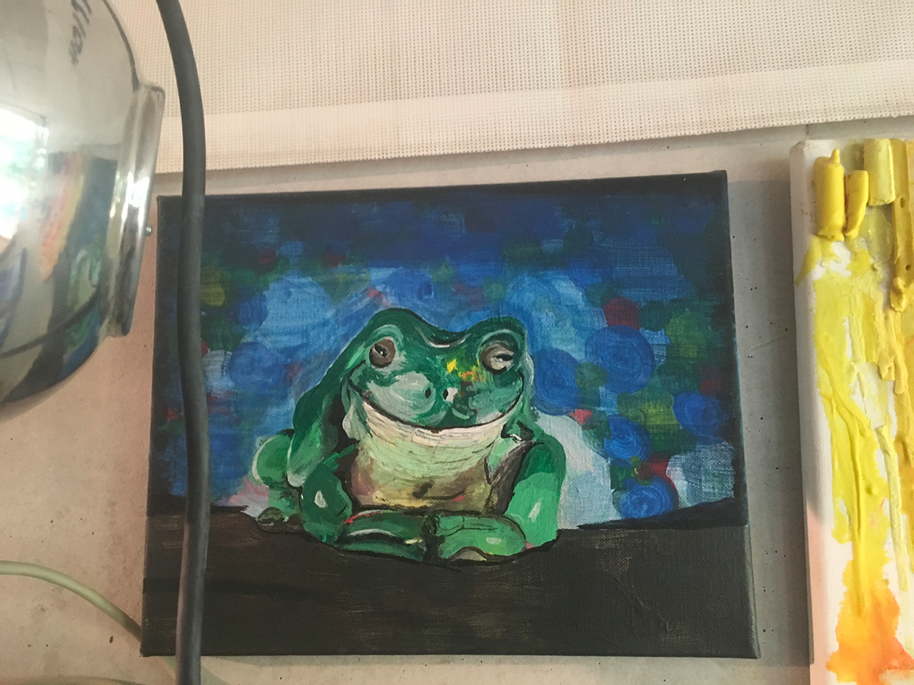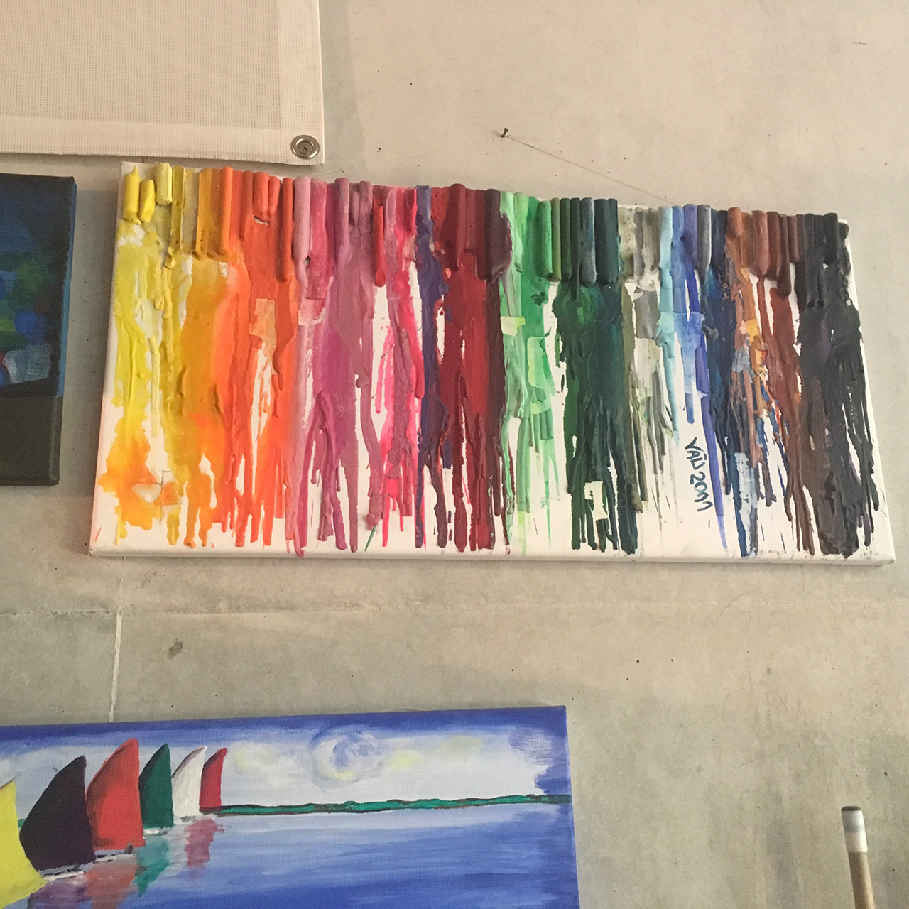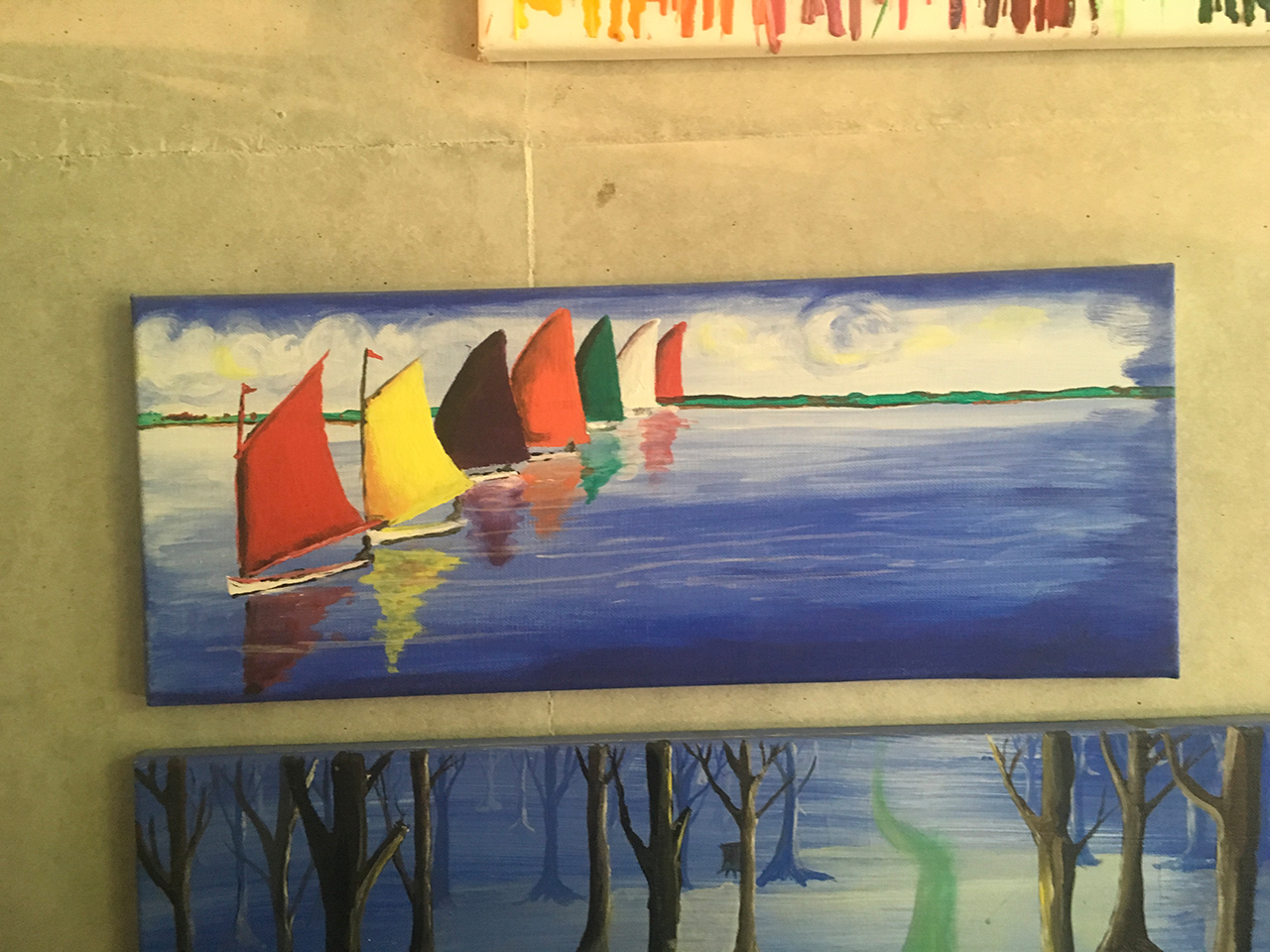 Wichtig ist mir dabei nicht immer in »alte« Muster zu verfallen. Das gleiche zu malen, was man auch zu Hause sonst malt. Neue Techniken auszuprobieren! Auch den Mut zu haben, dass das Bild dann nichts ist, was einem selbst gefällt oder anspricht. Dann beginnen wir eben von vorne. Oder wir fragen die unbekannte Nebenfrau oder den fremden Nebenmann freundlich, ob die Lust und Idee da ist weiter zu machen, wo man selbst jetzt gerade aufgehört hat.
