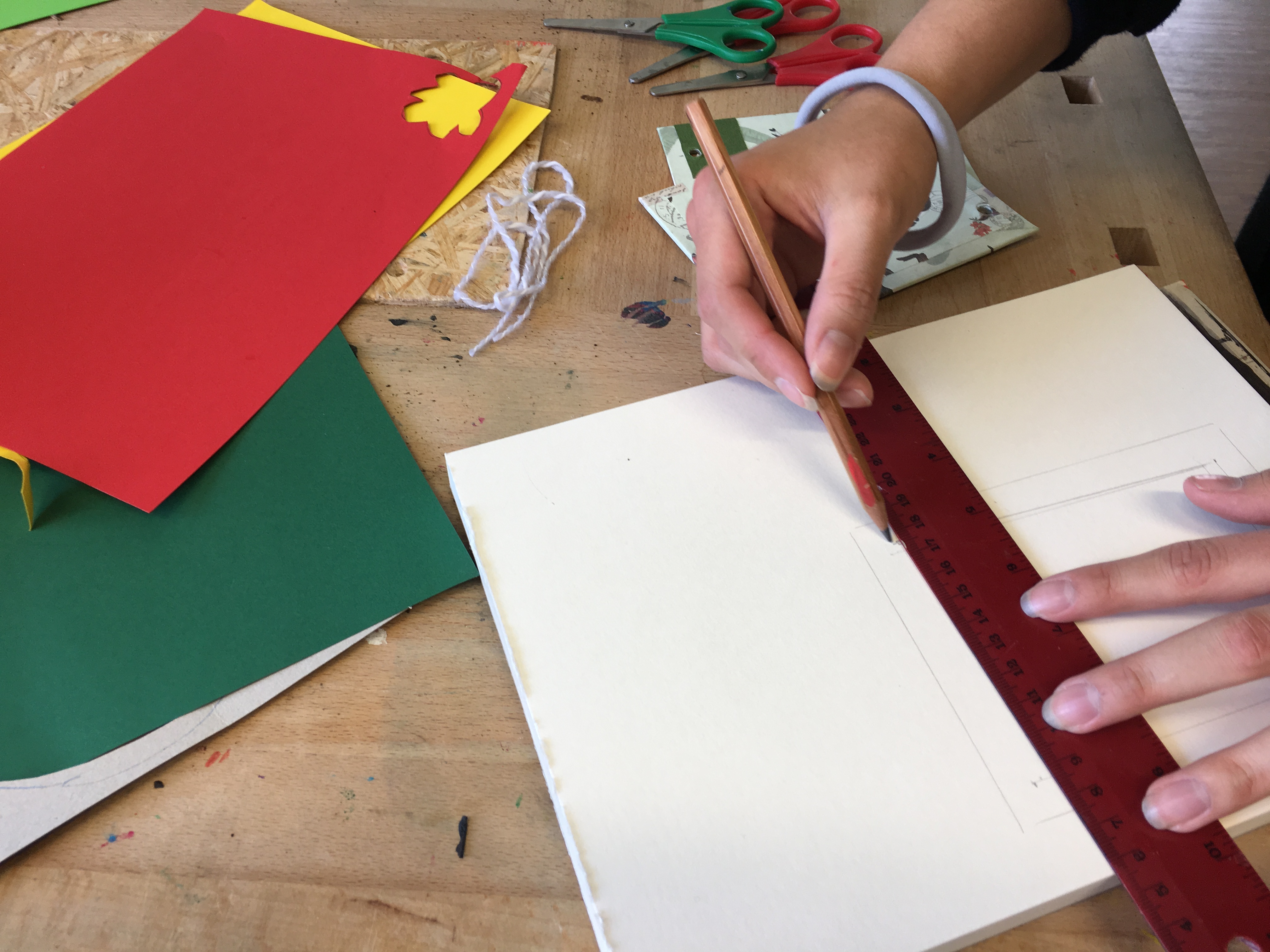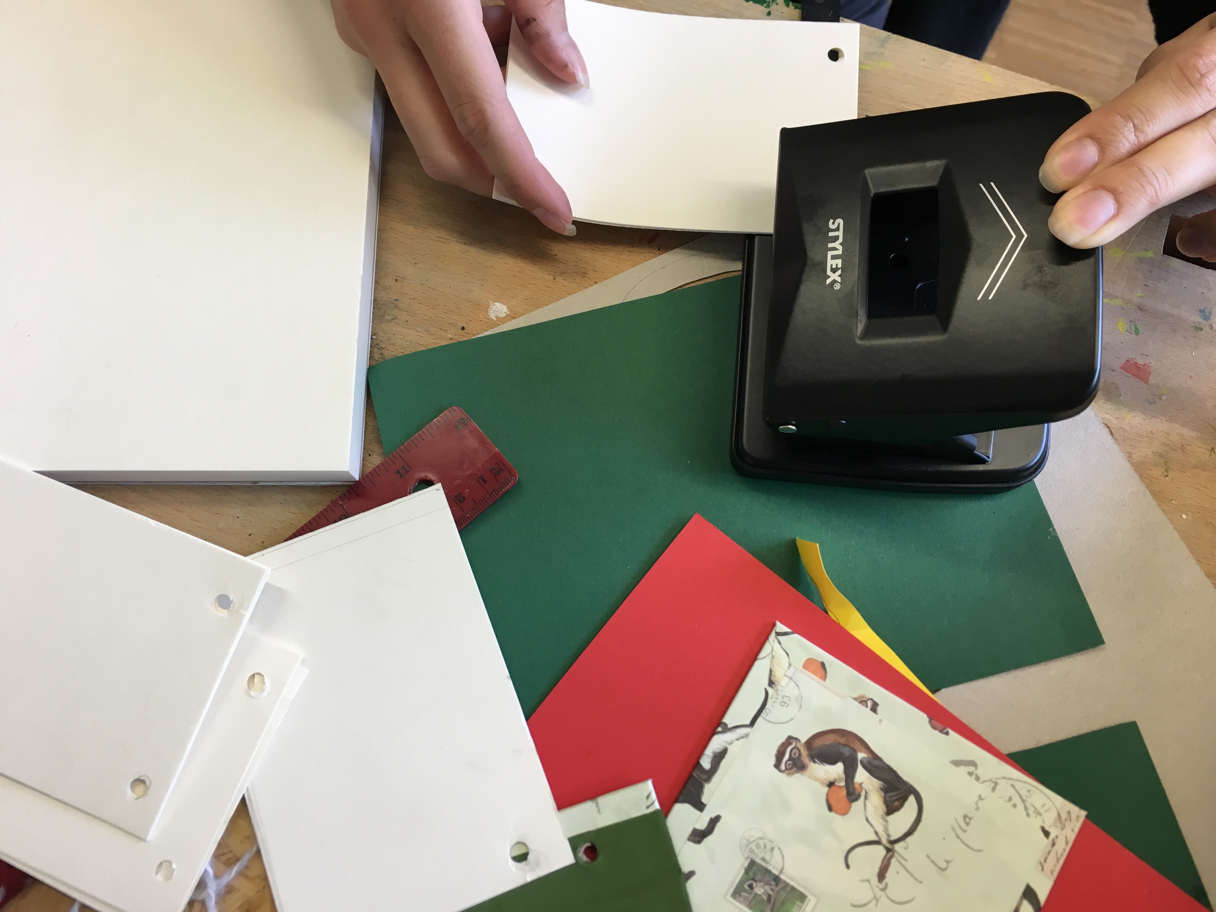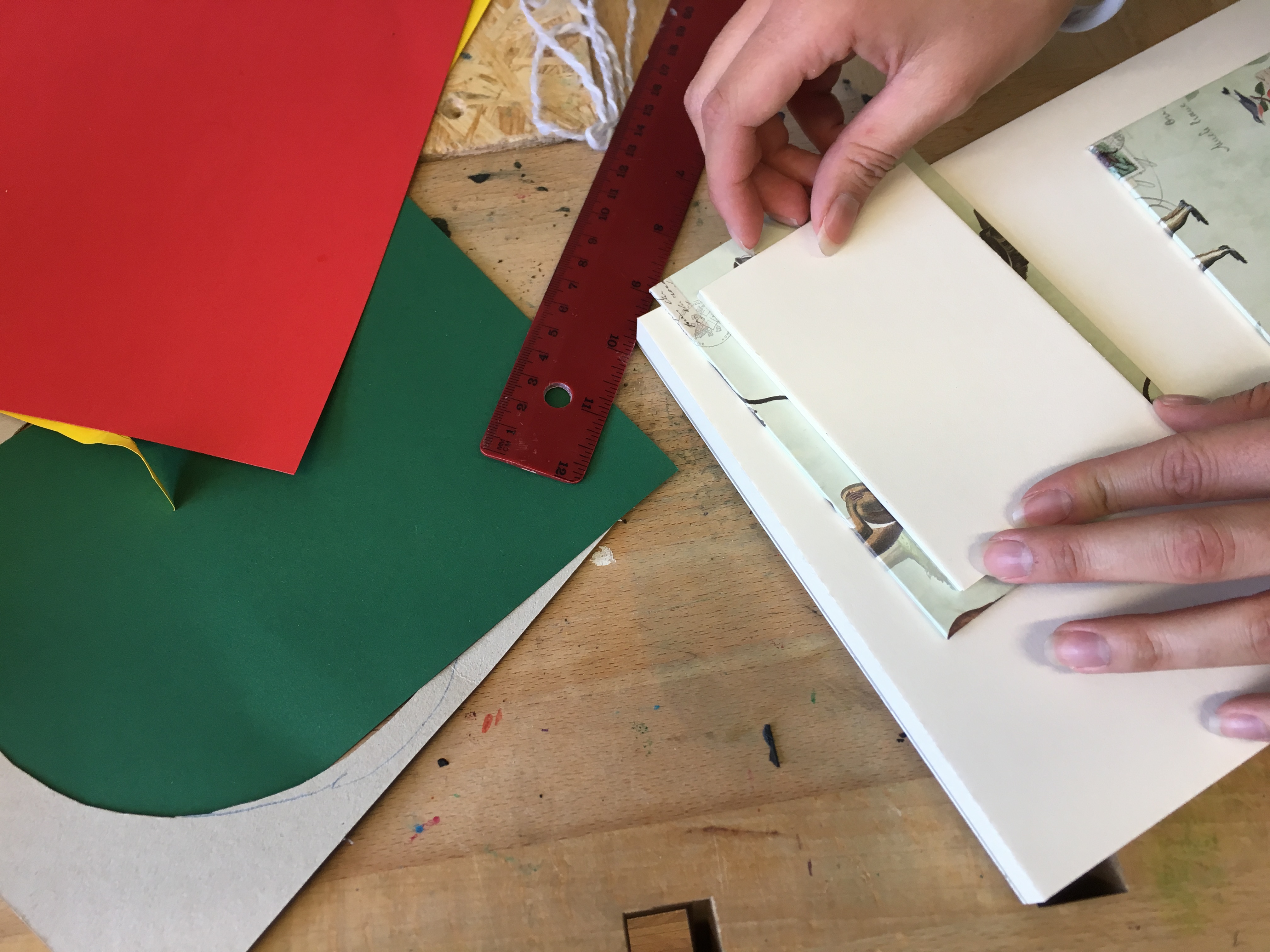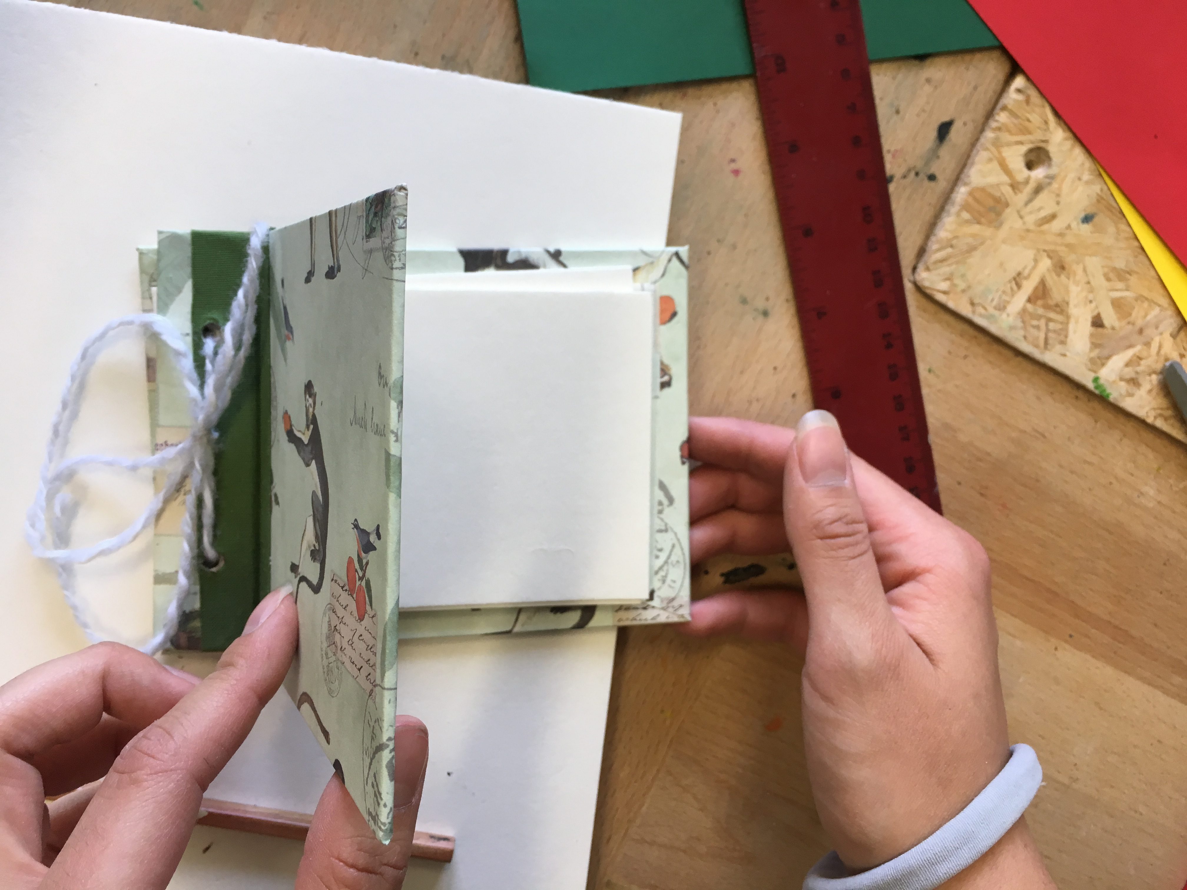 Am Ende saßen wir zu fünft am Tisch und waren damit beschäftigt, kleine Hefte und Fotoalben zu basteln. Nachdem wir einmal den Dreh raus hatten, machte uns die Arbeit richtig Spaß. Die Zeit verging wie im Flug, bis wir schließlich die fertigen Werke in der Hand hielten. Auch die Kinder waren begeistert und bemalten die Hefte gleich mit ihren Lieblingsfarben.