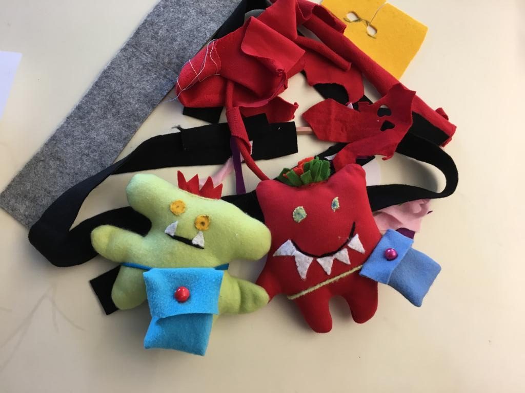 Auch wenn ich mir manchmal mit dem Nähen schwerer getan habe als einige der Kinder, bin ich auch stolz auf das kleine Monster, das ich selbst gestaltet habe. Und auch die Kinder waren alle zufrieden mit den Ergebnissen.