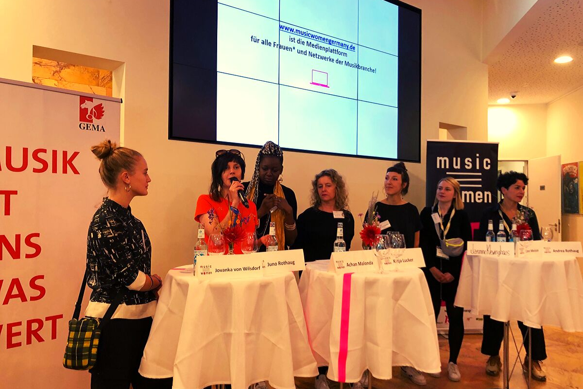 Tag 2 beginnt dann – auch für mich – endlich mit inhaltlichem Programm und dem Empfang der GEMA zum offiziellen Launch des Music Women Germany Netzwerkes im Arcotel Onyx. Entstanden aus der Vereinigung der musicHHwomen wird dort die neue erste deutsche Datenbank für Musikfrauen* vorgestellt. Hier kann man sich online registrieren, um eine bessere Vernetzung, Sichtbarkeit sowie Förderung der vielen (!) Frauen im Business voranzutreiben. Wir als Feierwerk Fachstelle Pop sind bereits Teil des bayerischen Äquivalents musicBYwomen und freuen uns deshalb umso mehr, bei diesem wichtigen Ereignis dabei sein zu können.