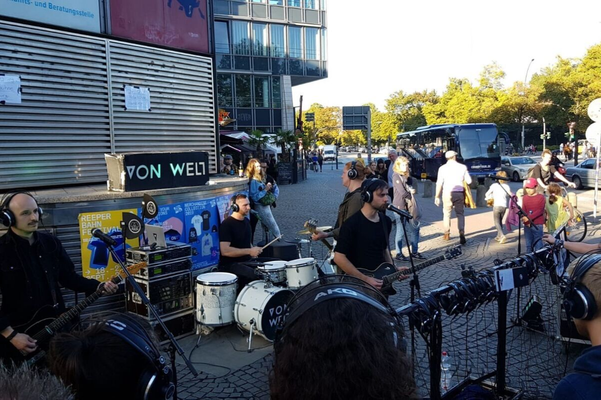 Voller Input geht‘s dann zu einer Netzwerk-Veranstaltung, der „Berlin Reception“ im Bidges&Sons, das quasi aus allen Nähten platzt: Neben verschiedensten Playern der Musikszene sind natürlich auch die Veranstalter*innen der Berlin Music Commission, des Music Board Berlin und von Budde Music da. Neben spannenden Gesprächen gönnen wir uns eine kleinen Schokokuchen-Pause. Lange können wir nicht bleiben, denn gegenüber im Sommersalon startet der VPBy e.V. mit dem Bavarian Networking Brunch. Bei einem Welcome-Drink sitzen wir mit David Süß vom Harry Klein zusammen, um über unser Cheers Special zur elektronischen Musikszene beim Sound of Munich Now – Electronica im November zu sprechen, tauschen uns mit Musiker*innen und Journalist*innen über Auftrittsmöglichkeiten in München aus und berichten Vertreter*innen von Booking-Agenturen von unserem Bandfundus. Gekrönt wird das Ganze dann von der anschließenden Bavarian Export Session mit Matija, Minipax, Das Ding ausm Sumpf und Ami Warning. Endlich Live-Musik!