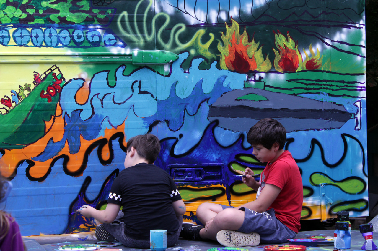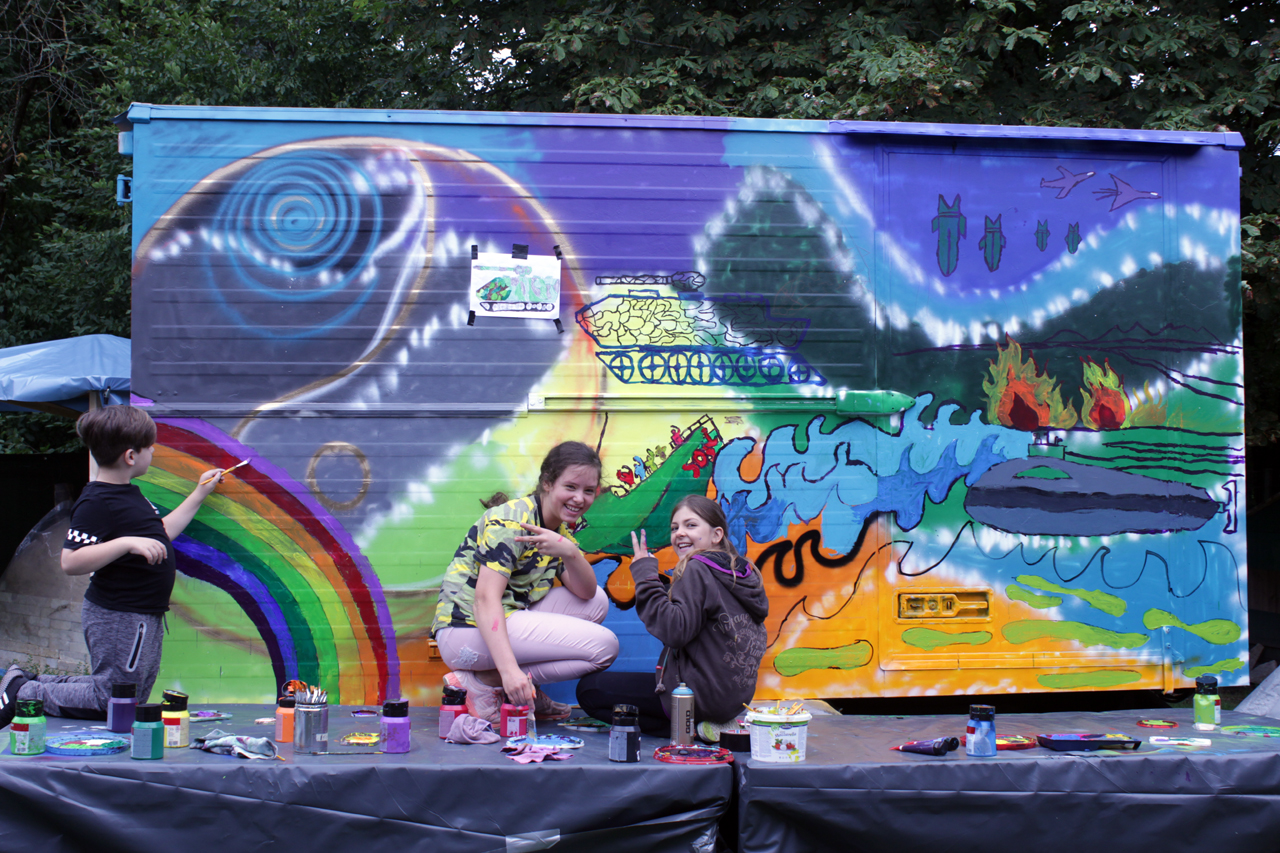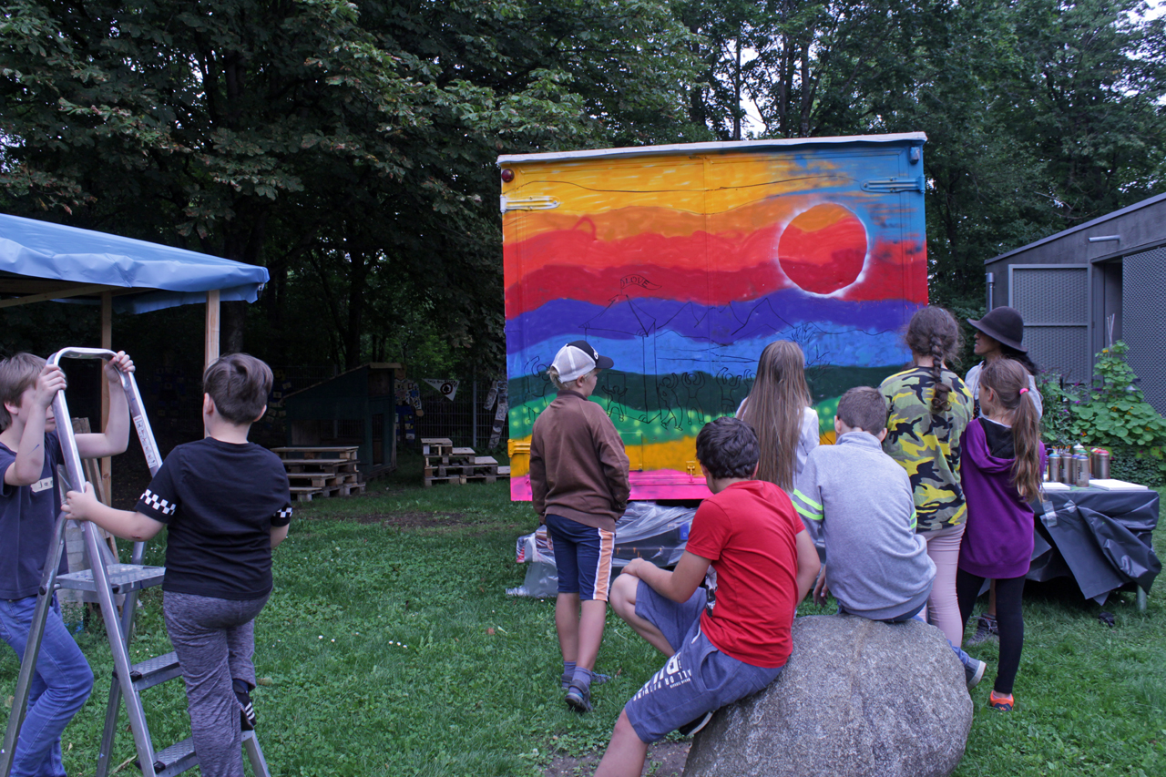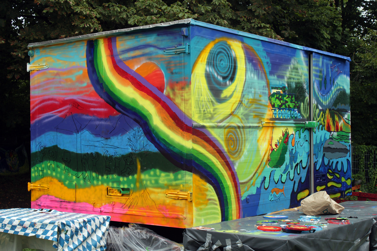 Wir haben einen Bauwagen organisiert, hergerichtet und umgebaut, der von außen passend zum Thema bemalt bzw. besprayt wird. Und hinterher soll der Wagen als manchmal mobiles und sonst bei uns in der Feierwerk Südpolstation stehendes Kinderatelier dienen, in dem die Kinder ihre Kunstwerke ausstellen können. Wir haben jetzt Halbzeit, die erste Woche ist rum und der Bauwagen zur Hälfte fertig. Es war anstrengend, hat aber auch super viel Spaß gemacht. Der Künstler Jorge hat die Kinder immer wieder mal von seiner Heimat in Südamerika begeistert. Sie haben es gemeinsam geschafft, ein geniales Street Art Kunstwerk zu schaffen. Und wenn das kein gebührender Abschied von meinem wunderbaren Jahr hier als FSJ-lerin ist, dann weiß ich auch nicht.
