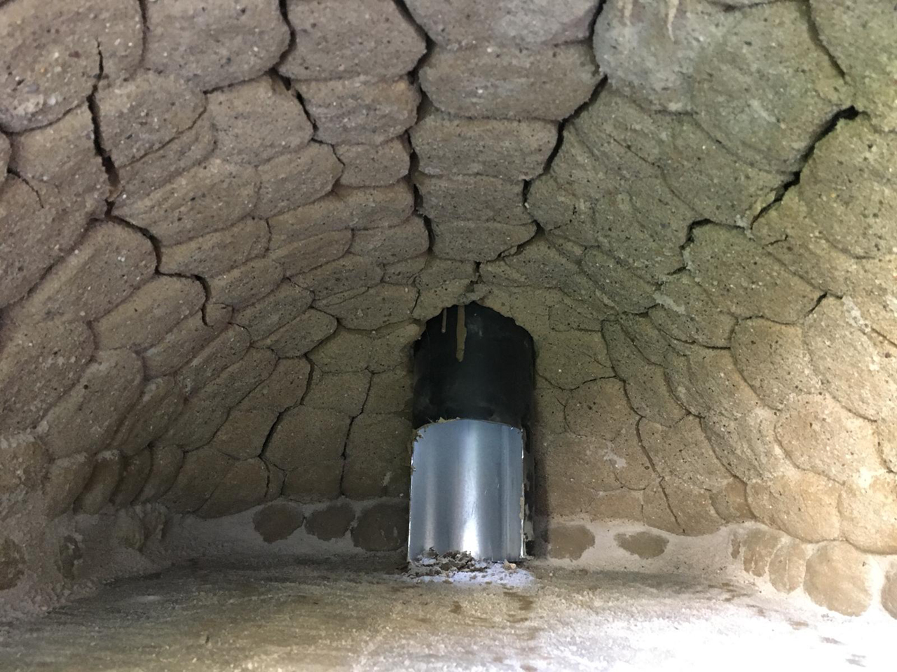 Oh, jetzt hatten wir doch glatt was vergessen. Das Ofenrohr. Es stand noch in der Werkstatt. Oh nein – alle Kinder waren schon weg. Also mussten wir Erwachsenen nochmal ein Loch in unsere Kuppel schaufeln und nach einigem Ruckeln war es drin. Puh, in letzter Minute. Jetzt konnte er trocknen.