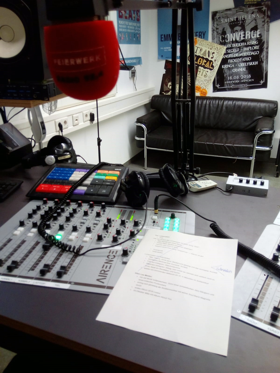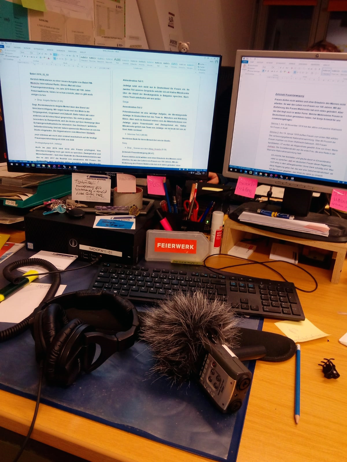 Es ist 20:00 Uhr. Ich sitze in dem überfüllten Büro von Esther Diestelmann, meiner Chefin. Sie liest meinen Beitrag. Schon vor ein paar Tagen habe ich ein Interview mit Michael Buschheuer geführt. Er hat die Seenotrettungsorganisation Sea-Eye gegründet. Das ist eines der privat organisierten Schiffe, das Menschen im Mittelmeer rettet. Mein erster Beitrag für das Szene Programm bei Radio Feierwerk. Das Thema habe ich mir selbst ausgesucht, vorgeschlagen und jetzt soll ich es umsetzen. Ich bin ganz schön nervös, während Esther meine Töne anhört, den Beitragstext korrigiert und verändert. Die Zeit drängt. Ich muss meinen Text noch einsprechen und anschließend produzieren. Um 21 Uhr beginnt die Sendung.