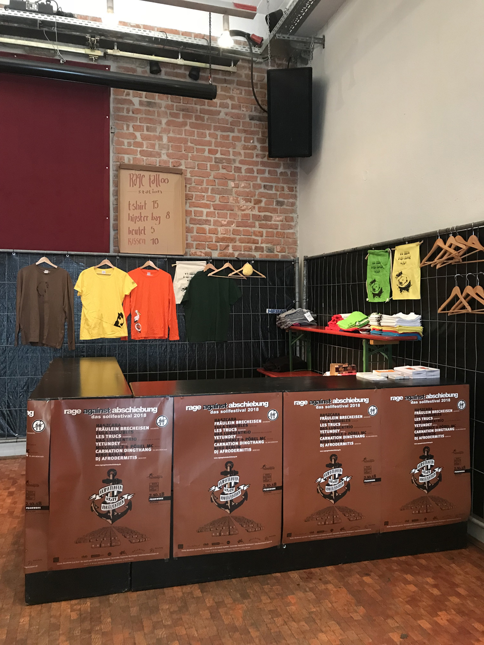 Am 2.10.2018 war er nun also mit mir auf dem Rage Against Abschiebung im Feierwerk – was für ein Wunder: Wir konnten zusammen vegane Falafel essen, tanzen, Freund*innen treffen, uns mit anderen Geflüchteten unterhalten und es uns einfach gut gehen lassen. Noch vor drei Jahren lebte Yusef nämlich im Osten Syriens, in einer Stadt, die über zwei Jahre unter Besatzung des sogenannten Islamischen Staats stand. Das bedeutete für ihn nämlich: weder tanzen, noch Spaß mit Freund*innen, noch sonst irgendetwas tun, was dem Menschen gut tut. Auch lernen durfte er nicht. Das einzige, was er lesen durfte, waren die Schriften des Koran. Den einzigen, den er auf einer Bühne bewundern sollte, war der selbsternannte religiöse Anführer der Stadt. Aber dieses Wochenende war das beim Rage: Bird Berlin, der mit seiner bunten Glitzershow die Leute zum Strahlen brachte; Haszcara, die als feministische Rapperin jeden Typen in den Schatten stellt; Pöbel MC, der gegen eine rassistische Welt voller Grenzen und Abschottung rappt; oder Fräulein Brecheisen, deren Songs einem noch am nächsten Tag einen Ohrwurm bereiten.