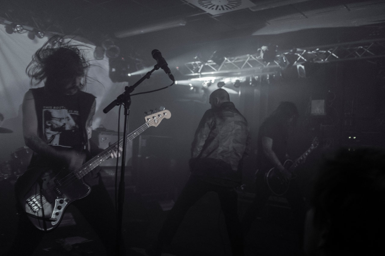 Dieses Gesamtkunstwerk sollte auch nicht durch Unterbrechungen gestört werden. Es gibt keine Ansagen oder Begrüßungen von Colin H. van Eeckhout. Alle Songs an diesem Abend hingen aneinander. Nur kurze flackernde Blitze des Strobolichts geben helle Momente und so etwas wie Licht am Ende des Tunnels. Doch die Helligkeit dauerte nie lange an. Bei „A Solitary Reign“ wirkten Stimme und Gitarrenintro so zerbrechlich, dass die Spannung in der Halle greifbar schien. Genau in diesen Momenten zeigten Amenra, was für eine gute Liveband sie sind. Sie schaffen es, ihre Songs mit so viel musikalischer Emotion aufzuladen, dass es schwer fällt, sich der düsteren Atmosphäre zu entziehen. Es folgten „Dearborn And Buried“ vom Album „Mass V“ sowie „Am Kreuz“ und „Dodenakker-Nemelendelle“ vom Album „Live“. Ihr Gesamtkunstwerk brachten Amenra an diesem Abend mit „Diaken“ zum Abschluss. Wie für Amenra typisch, entließen sie das unruhige Münchner Publikum ohne Zugabe.