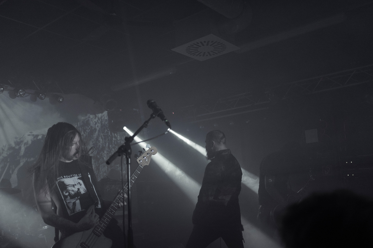 Zu Beginn des Konzerts hörte man aus dem Publikum noch ein „Fresse halten!“, andere versuchten es etwas diplomatischer mit einem „Pssssst!“. Doch es half nichts. Das Gemurmel des Publikums blieb bestehen. Dabei gaben Amenra allen Anwesenden lange Zeit, sich auf ihr Konzert vorzubereiten. Das dreiminütige Intro hörte sich an, wie eine schwere, vibrierende Walze, die gleich über das Publikum hinweg rollen würde. Und genau das passierte musikalisch auch.